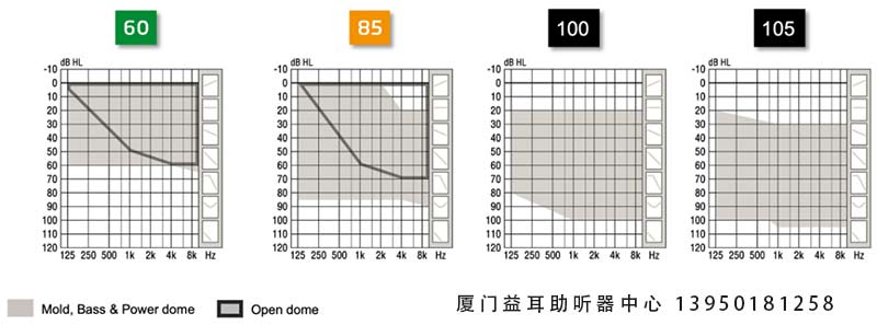 同一台助听器,可以搭配不同功率的受话器: