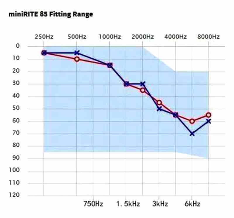 答案是:完全不是! 假如您的听力图刚好落在在验配范围的边界上,那么这其实还是很危险!如果您的听力图下限刚好紧贴着验配范围图表最下面的线,会带来两个严重问题: