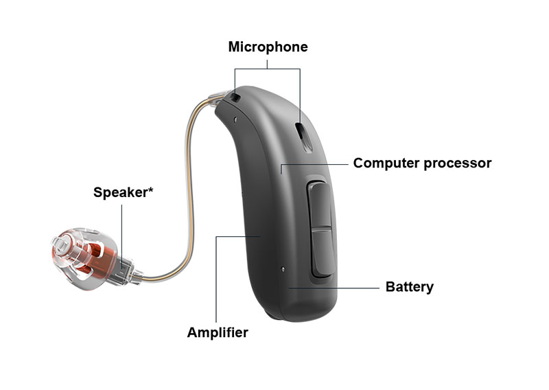 我们现在来讲一个实际的应用。目前最主流的助听器产品之一—Ric助听器(受话器外置型),其特点是主机在耳朵后面,但受话器是通过一根细导线放在耳道里的。请注意:对于这类助听器,决定验配范围的,不是耳后的主机,而是耳道里的那个小小的受话器!