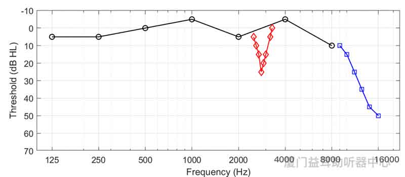 少数耳鸣患者在进行标准的纯音听阈测试(通常检查250Hz到8000Hz)时,结果显示在正常范围内。