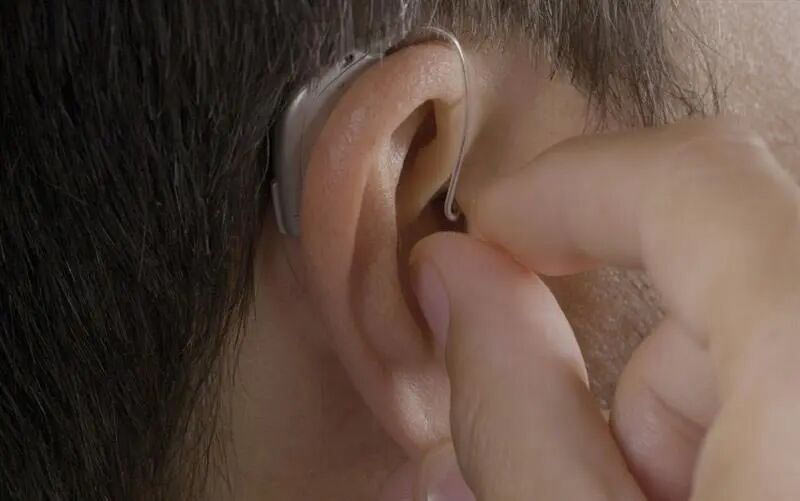 当然不是!那是因为你脑海里想的还是十几年前那种像香蕉一样巨大的老式耳背式助听器。而现在的 RIC 助听器,它的机身藏在耳廓后方,从正面和侧面几乎完全隐形,连接耳朵的只有一根极细的透明导线,其实看起来真的不明显。